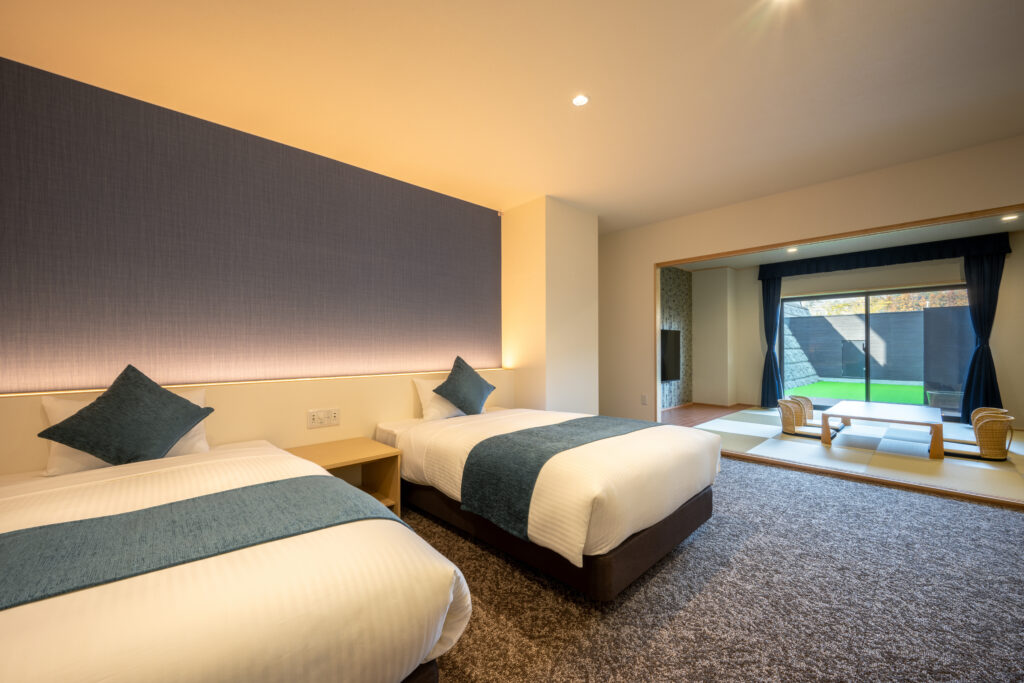 全4タイプの客室の全てにプライベートドッグランと露天風呂完備。