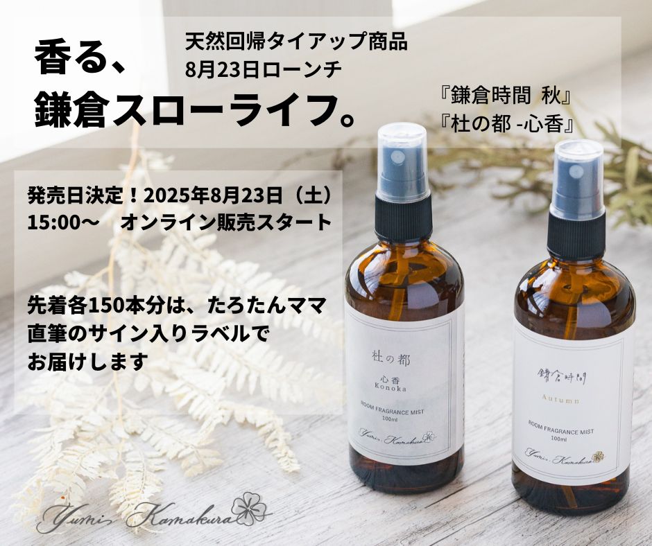 YouTube「鎌倉スローライフ」やInstagramで人気の“たろたんママ”がプロデュースするオリジナルルームフレグランスをタイアップ販売することになりました。